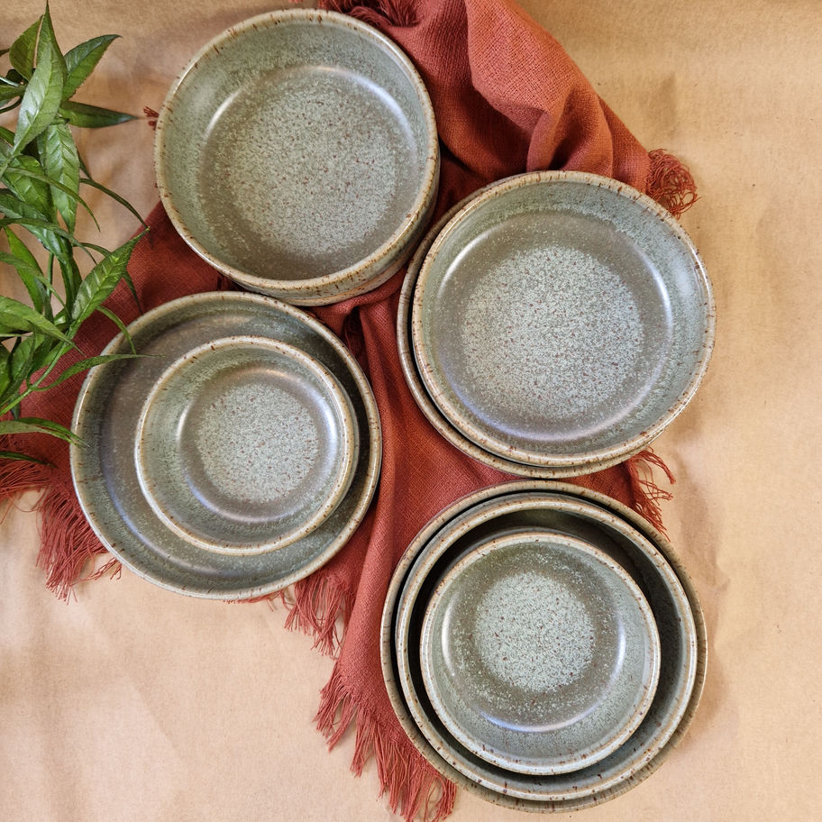 Deze reeks heeft een natuurlijke uitstraling met aardse tinten en een subtiele, gespikkelde textuur, waardoor elk stuk uniek oogt.